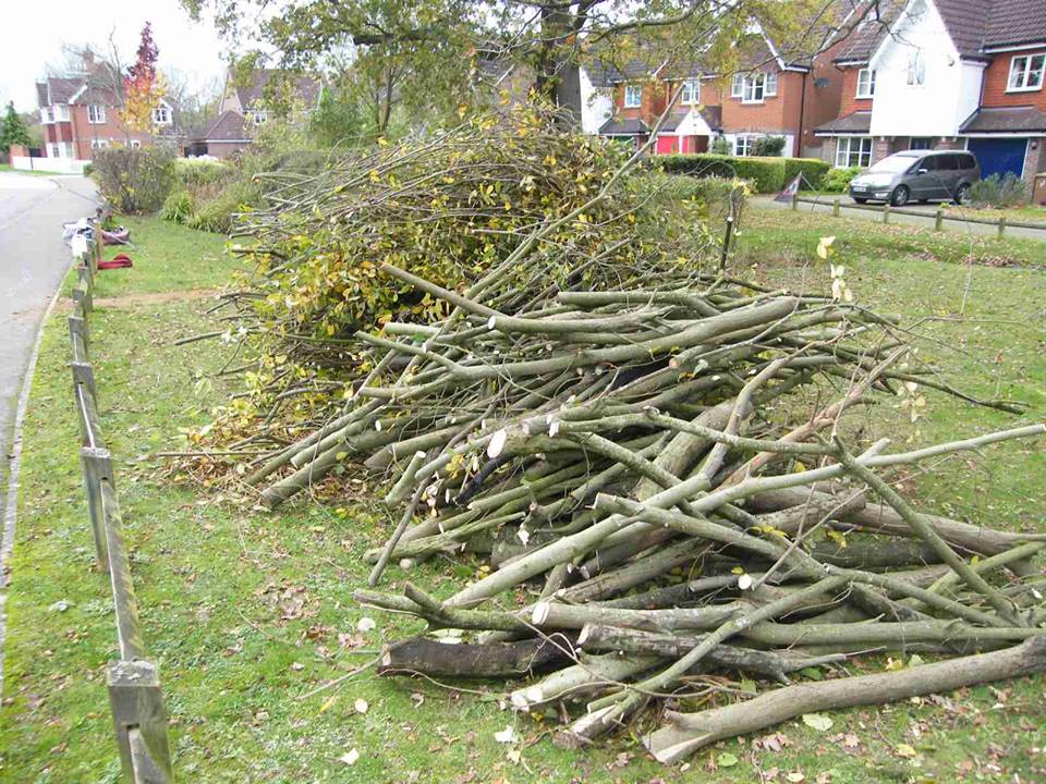 On our last visit the group successfully coppiced and cleared four out of the five willows from around the pond, removed some of the pond weed and reeds, raked out the drainage channel and coppiced a large hazel stool and the far end of the lawn area. The cut brash was piled neatly, awaiting the chipper to arrive from Reigate and Banstead Borough Council later on.